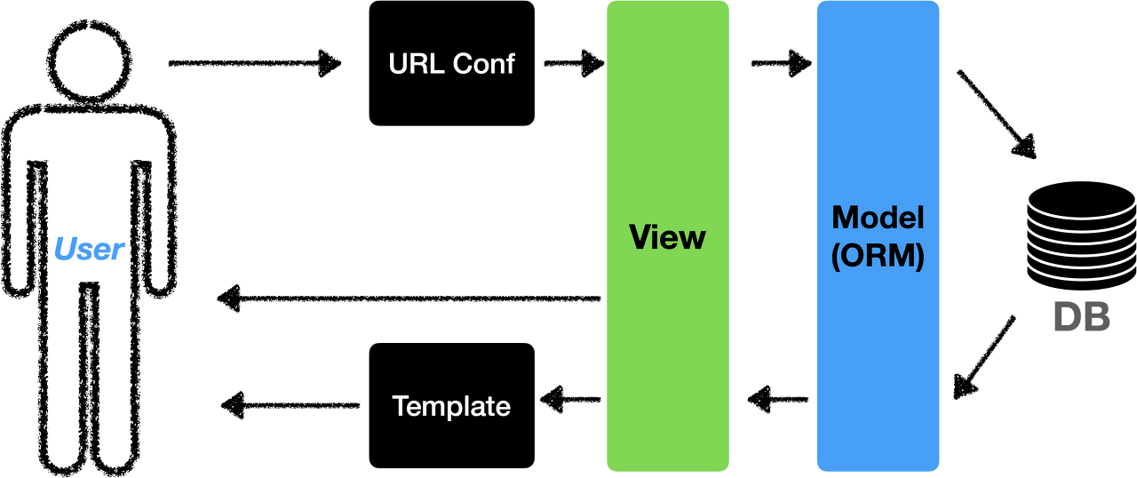 MVT패턴은 장고가 일하는 방식을 보여줍니다! 하나하나 다 외우지 않아도 되지만, 그림을 보면서 흐름을 파악하면 앞으로 개발을 하는 데에 많은 도움이 될 것이라고 자신합니다!